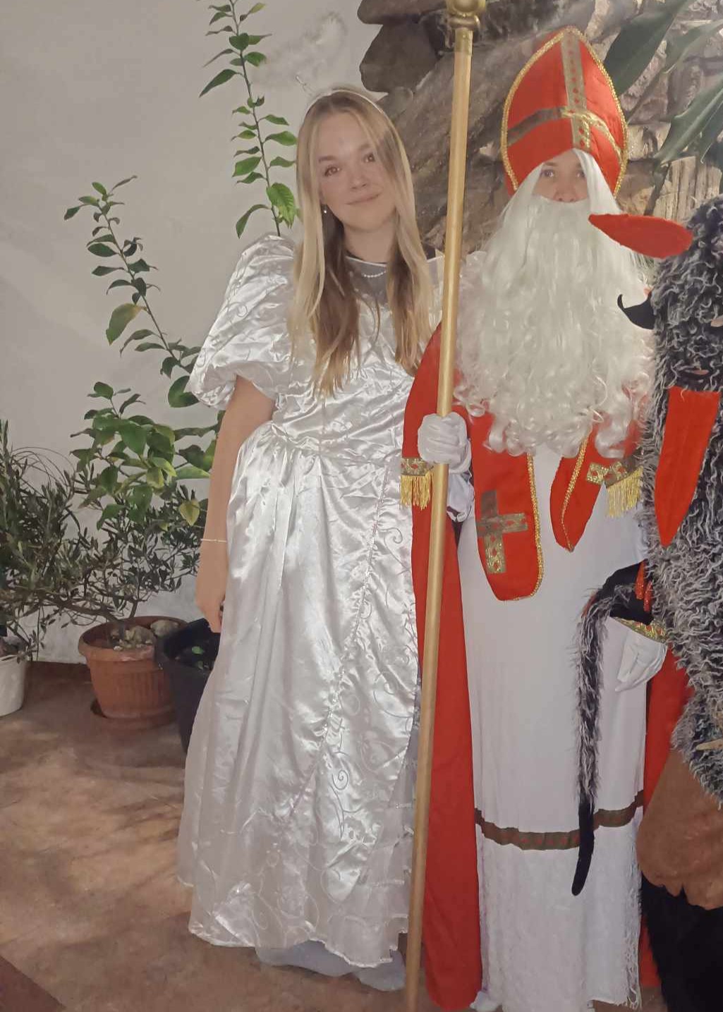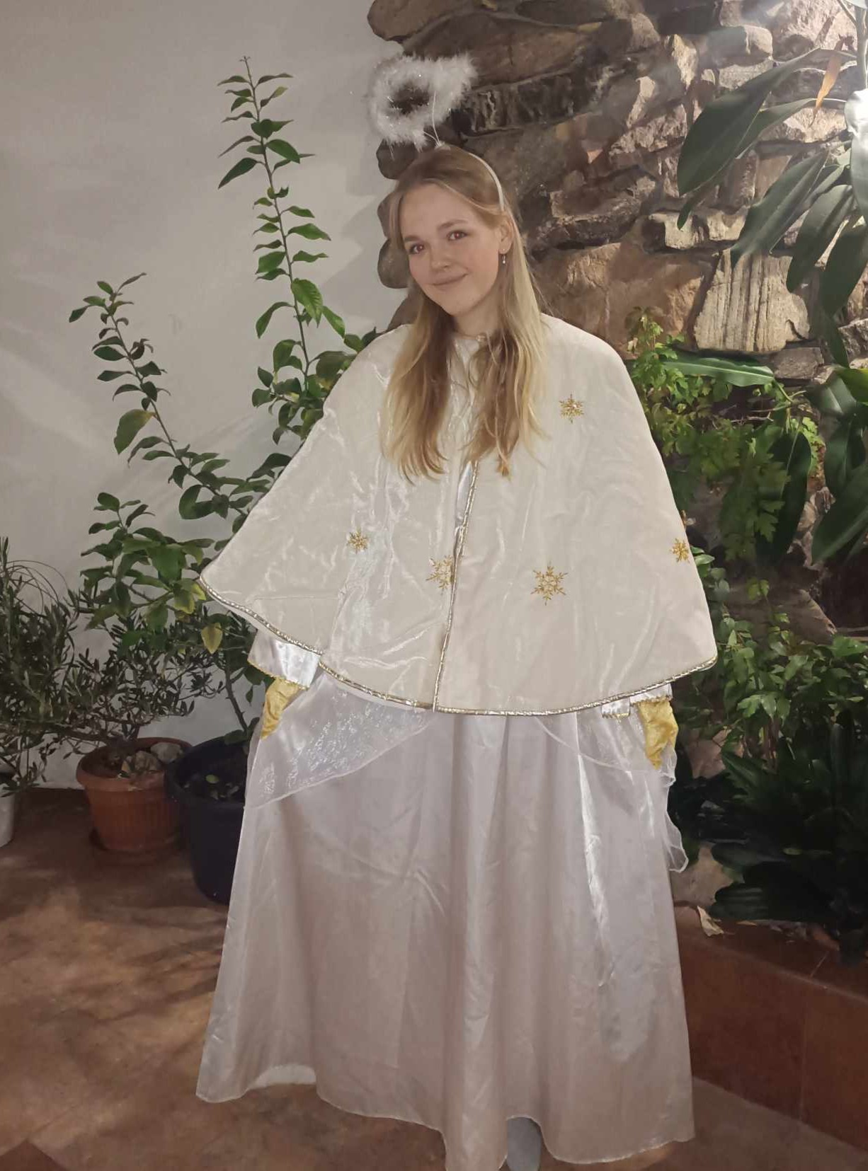 Kostým Anděla č. 2 je ve velikosti 40 a je s dlouhým rukávem, proto se hodí ven i do místnosti.